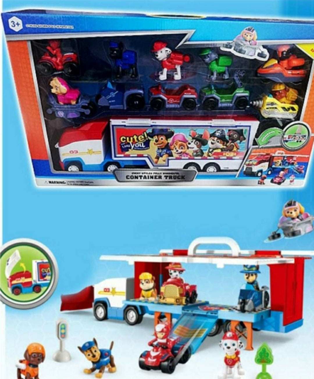 Patrolne sape kamper kamion sa 7 junaka i vozilima odlican set za decu koja obozavaju Patrolne sape.